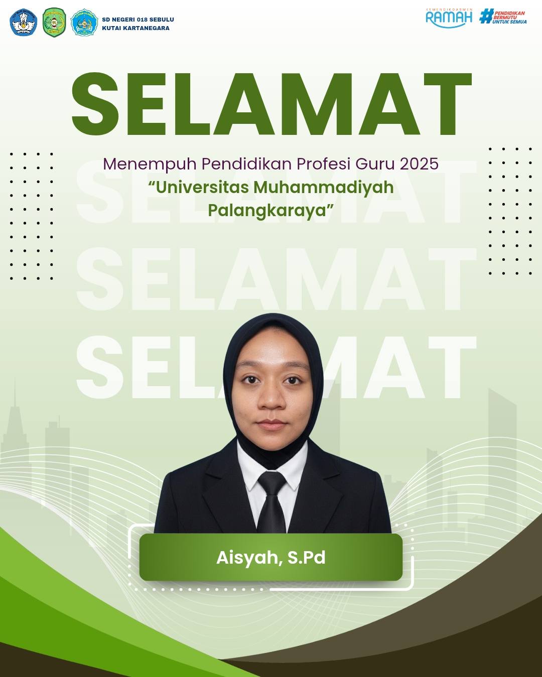 Kabar membanggakan datang dari jajaran guru SD Negeri 018 Sebulu. Aisyah, resmi mengikuti Program Pendidikan Profesi Guru (PPG) Tahun 2025 di Universitas Muhammadiyah Palangkaraya.