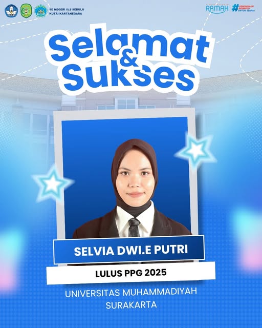 Prestasi membanggakan kembali diraih oleh tenaga pendidik SD Negeri 018 Sebulu. Selvia Dwi Erwanda Putri, resmi dinyatakan lulus Program Pendidikan Profesi Guru (PPG) Tahun 2025 dari Universitas Muhammadiyah Surakarta.